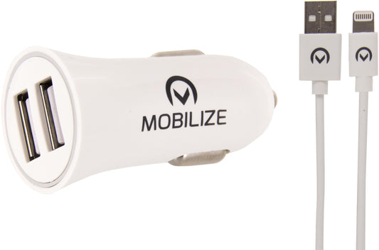 Mobilize Car Charger 2X Usb 24W + Usb To Apple Mfi Lighting Cable 1M. White
